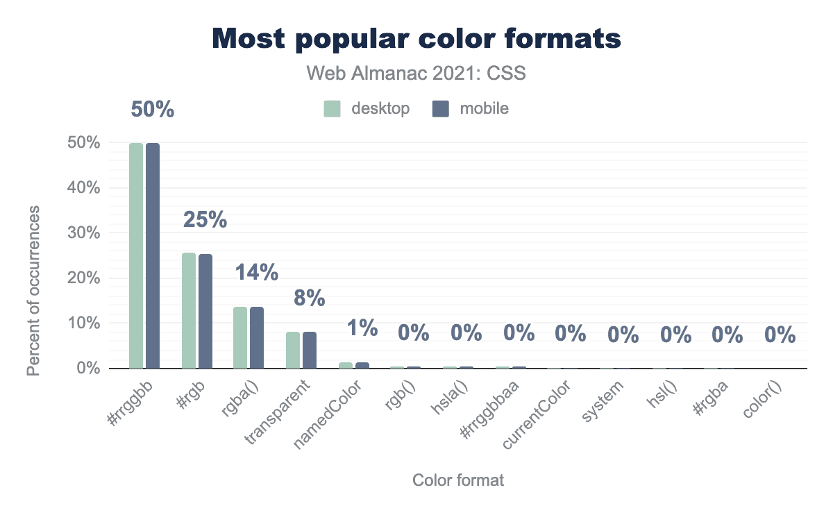 As in 2020, the winner was background-size, although last year it showed up in 41% of such cases on mobile, and this year was seen in only 15% of such cases.