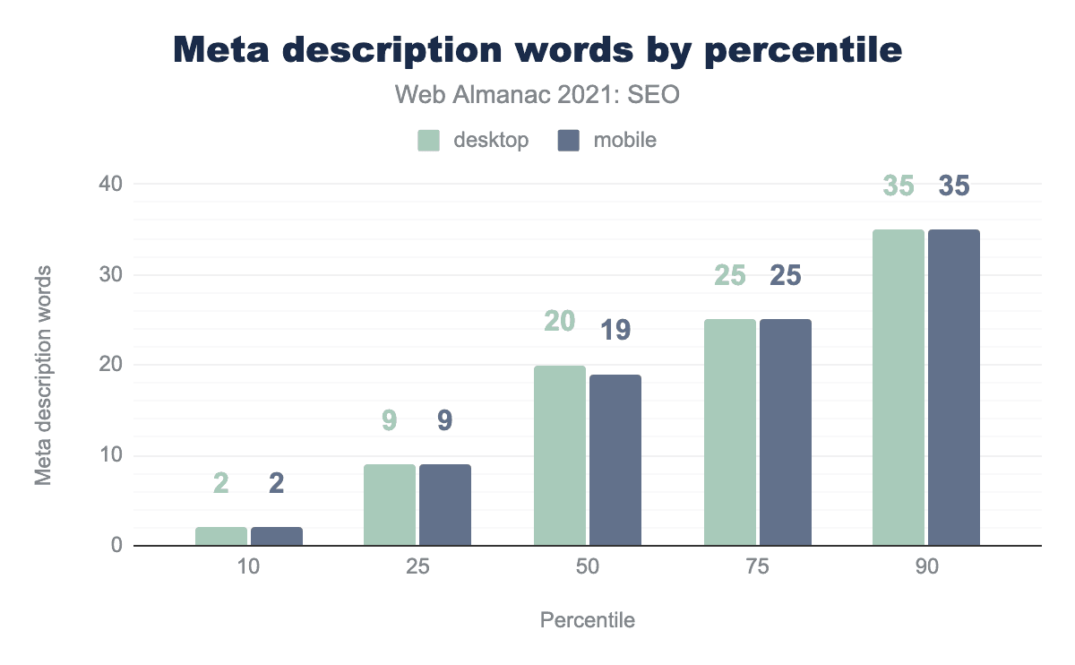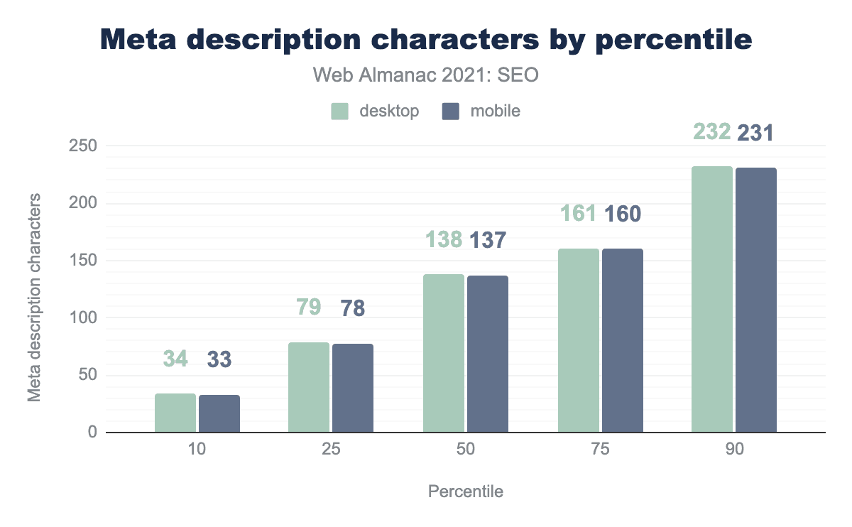 In 2021, 98.8% of desktop and mobile pages had <title> elements. 71.1% of desktop and mobile home pages had <meta name="description"> tags.