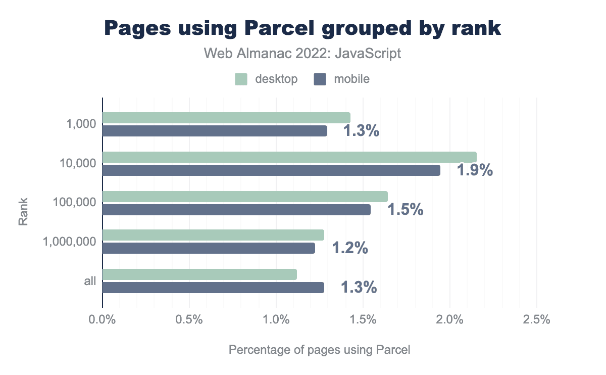 Figure 2.5. Pages that use Parcel-bundled JavaScript by rank.