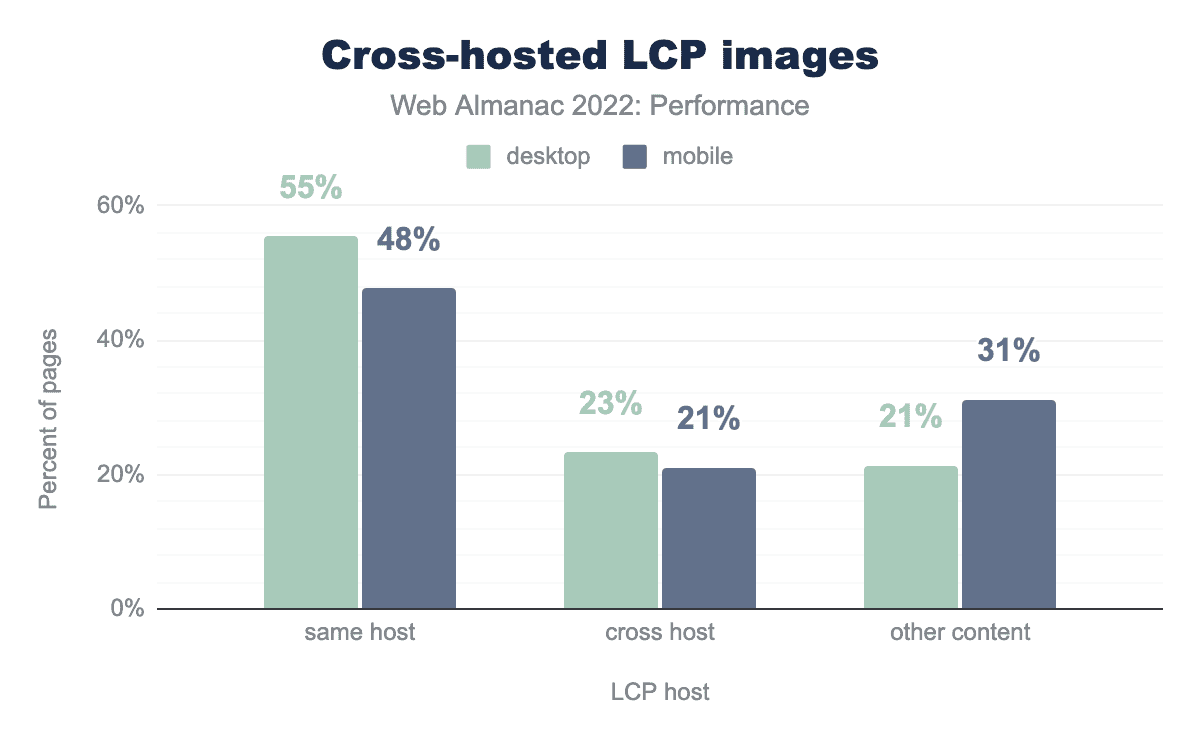 8% of mobile pages depend on an external stylesheet for their LCP resource, for example using the background-image property. This adds a link in the resource’s critical request chain and may further complicate LCP performance if the stylesheet is loaded cross-origin.