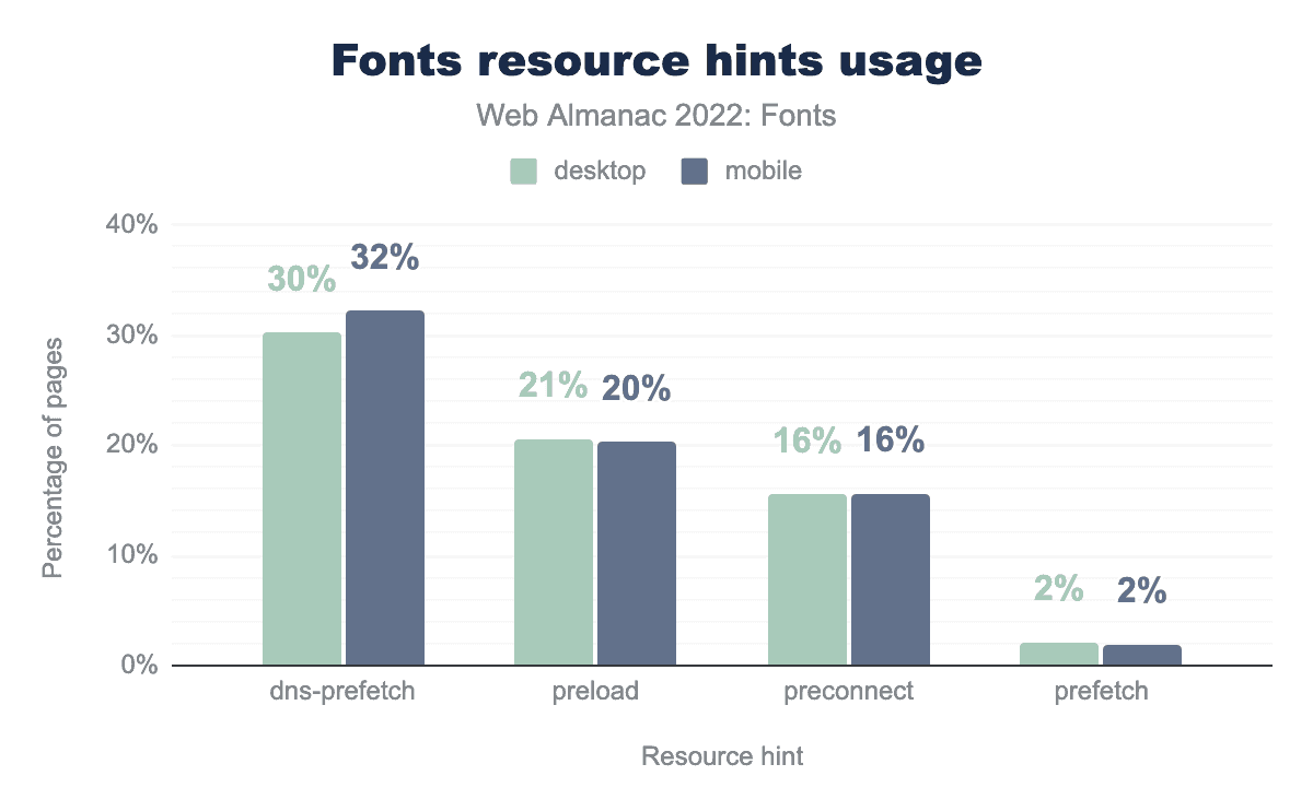 Only about 1 in 200 mobile pages preload their LCP images. This figure falls to about 1 in 400 (0.25%) when we only consider pages whose LCP images are not statically discoverable.