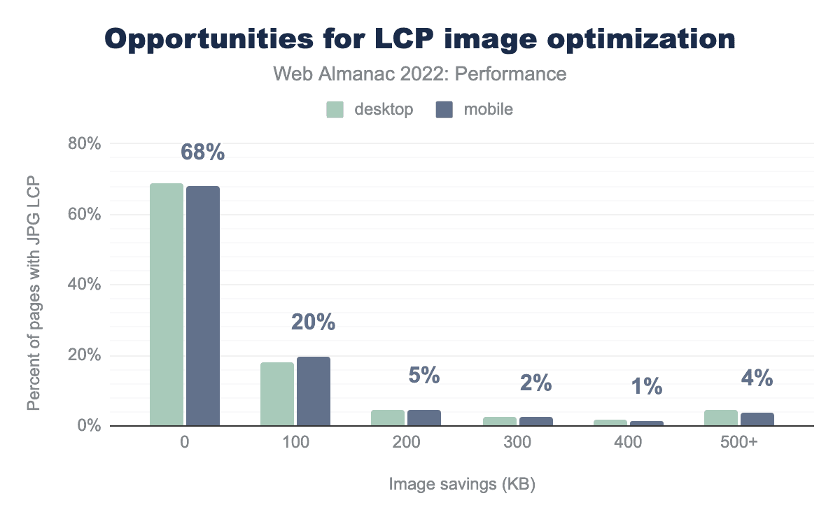 These results show that the overwhelming majority of the web could benefit from making their LCP images more discoverable. Loading LCP images sooner, either by making them statically discoverable or preloading them, can go a long way to improving LCP performance. But as with all things related to performance, always experiment to understand what’s best for your specific site.