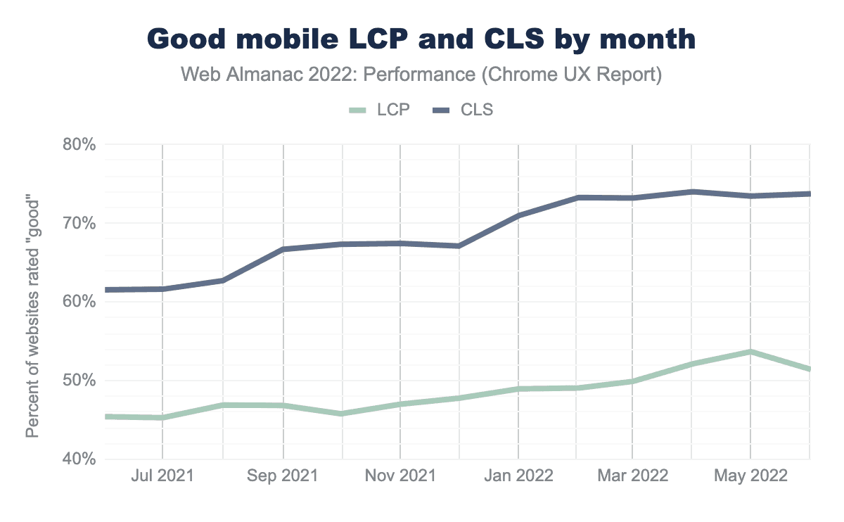 Google’s decision to make CWV part of search ranking catapulted performance to the top of many companies’ roadmaps, especially in the SEO industry. Individual site owners are certainly working hard to improve their performance and played a major role in the CWV improvements over the last year, even if those individual efforts are much harder to spot at this scale.