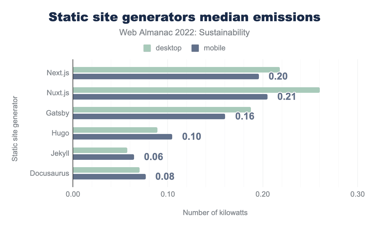 It appears evident that site generators have prioritized optimization as part of their builds. Astro, Hugo, and Jekyll all have emissions substantially lower than all the CMS that have been categorized.